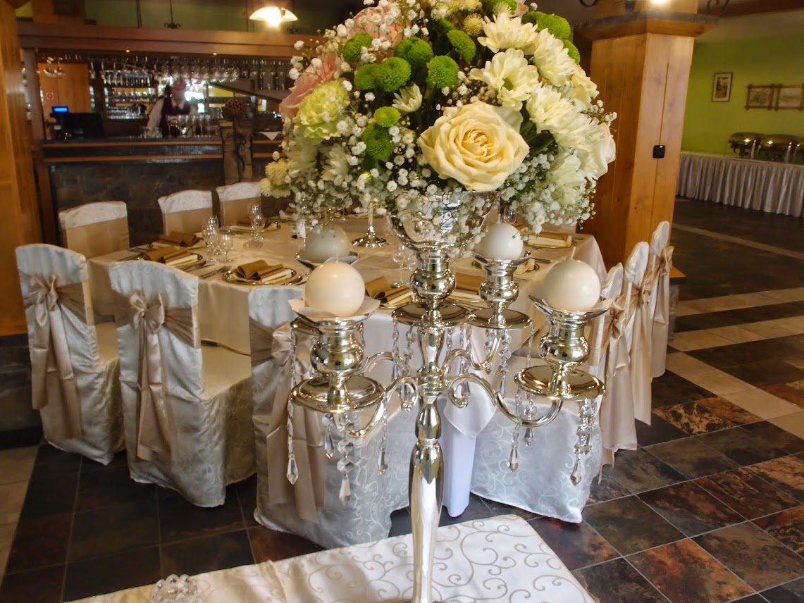 Svadba 1.12.2012, hotel Magura Ždiar, výzdoba champagne-maslová