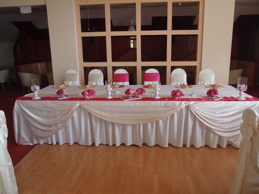 Svadba Spolcentrum Svit, výzdoba ružovo-strieborná