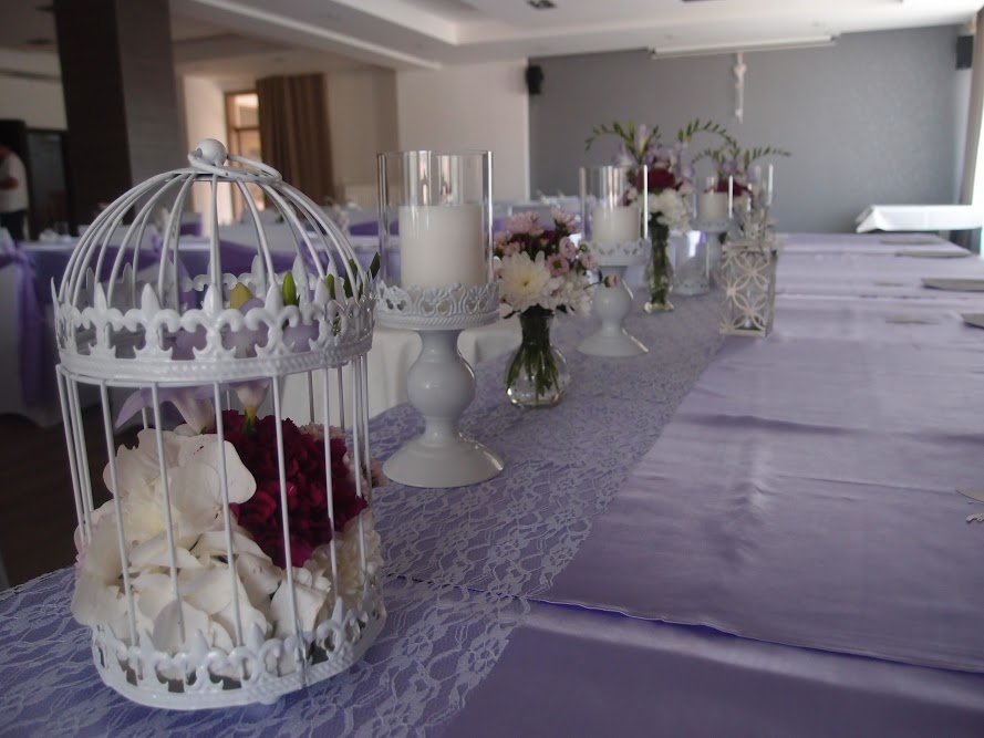 Svadba Spolcentrum Svit, výzdoba striebrno-fialková